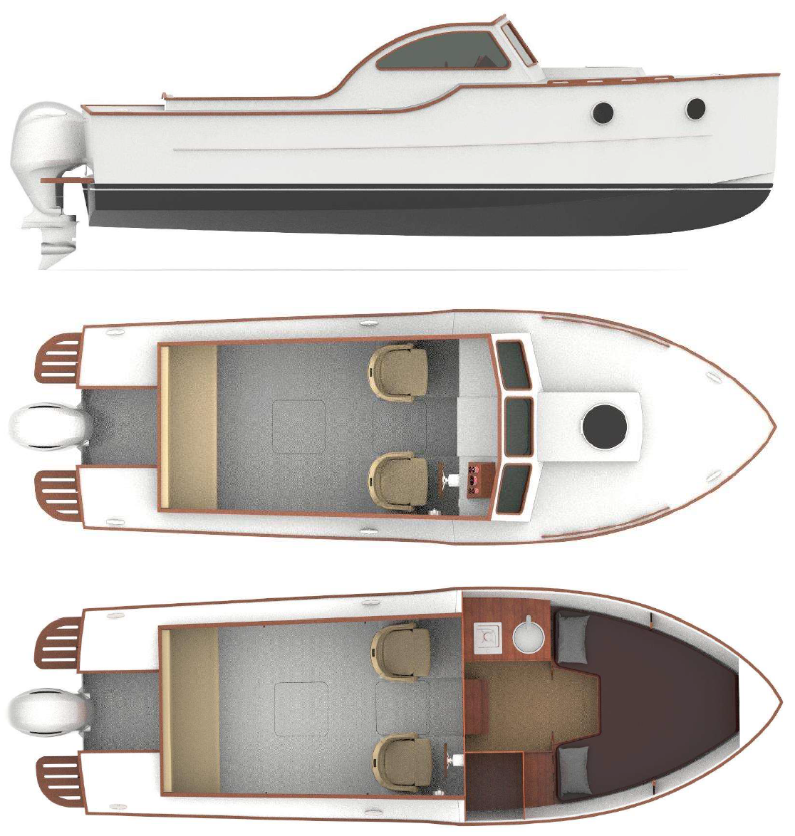 This 24 ft motor boat has been specially designed for amateur boat builders using a plywood/epoxy construction method. The design ensures a sea kindly performance, good speed and seaworthiness.